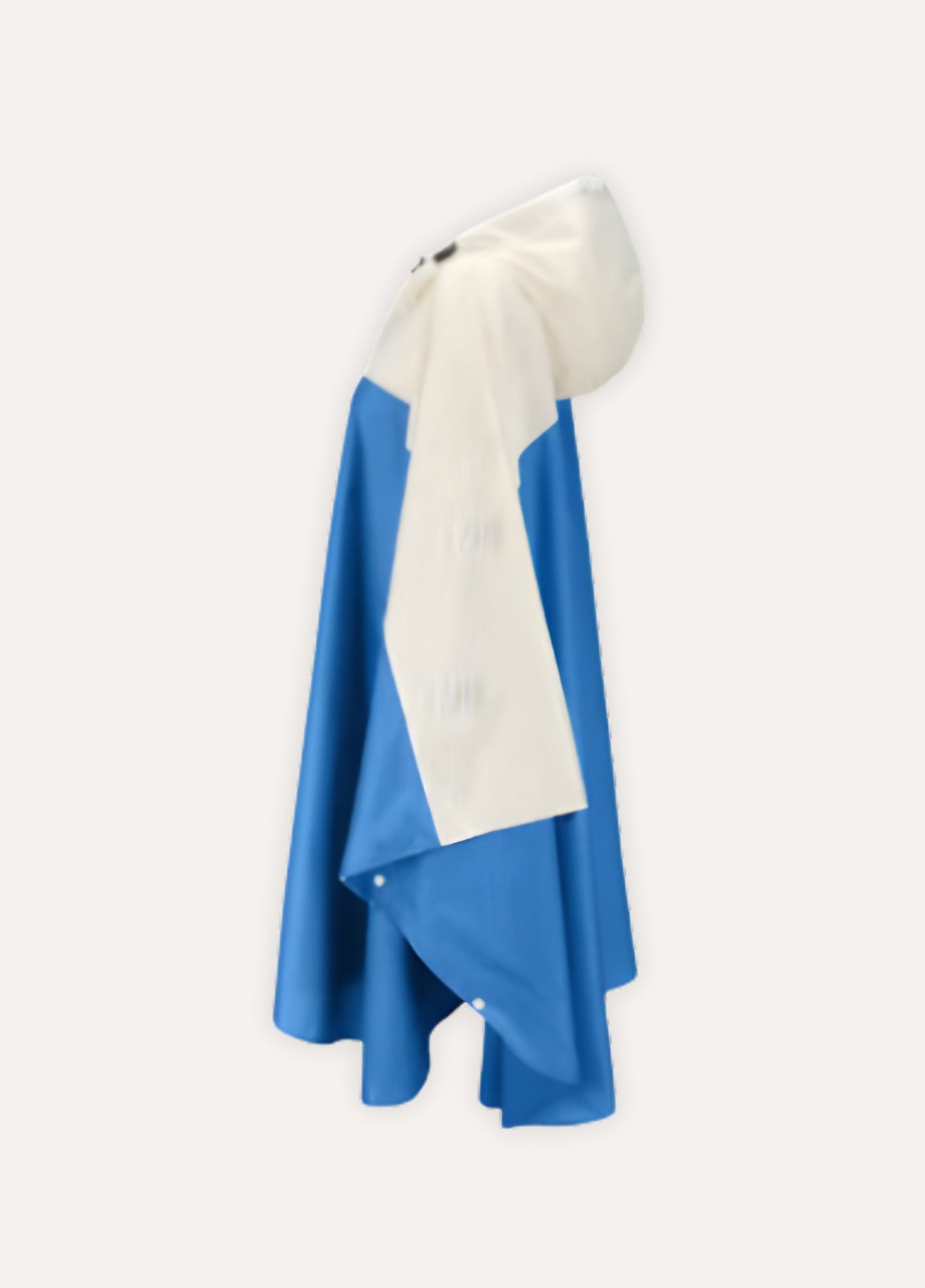 This outdoor poncho is crafted to combine practical rain protection with a clean, modern style. Made from lightweight, water-resistant polyester, it features a wide flowing cut that covers the body fully while allowing free movement. The two-tone colour block design is striking and stylish, with a contrast between the upper white section and the bold lower shade — available in blue, black, green or yellow.